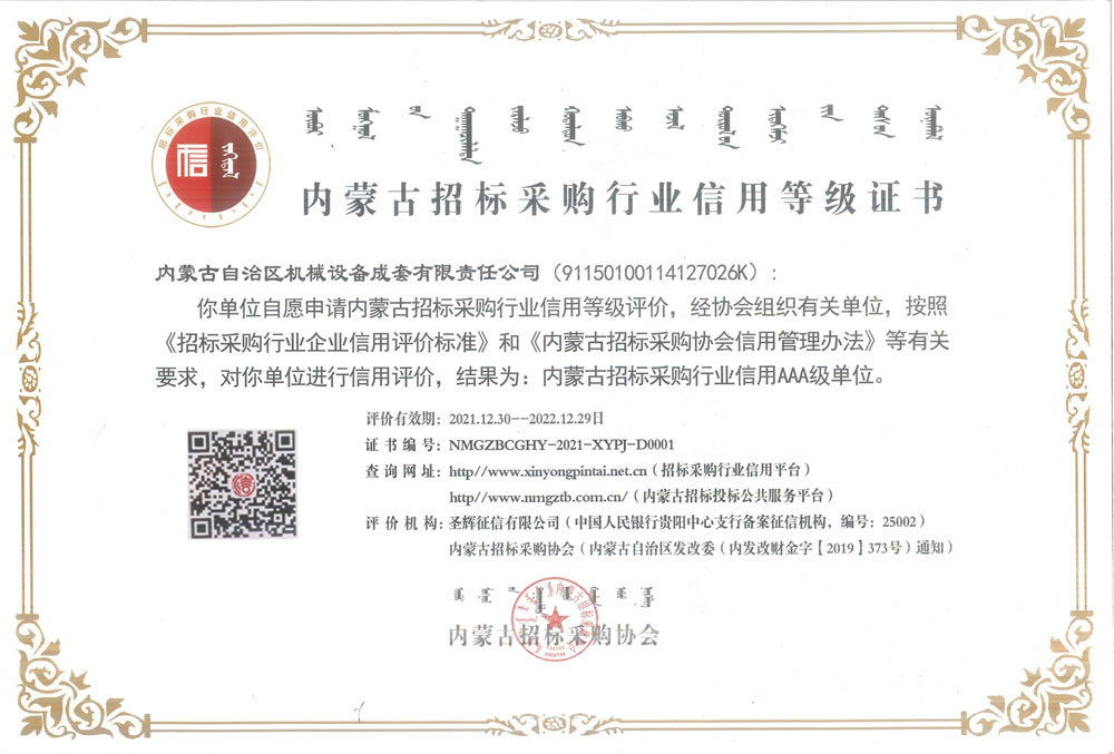 • 【喜訊】我司榮膺“內蒙古知名質量品牌”(四星級)榮譽稱號